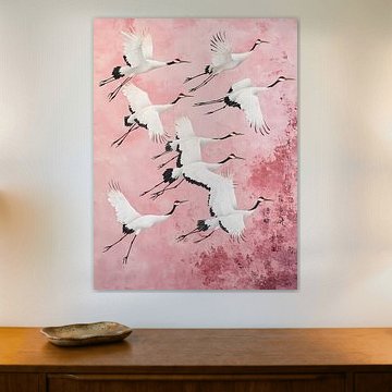 Cranes in pink background haroulita