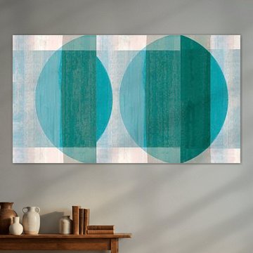 Mid Century Bauhaus Shapes Pastel Painting Teal Cyan Petrol FRESH Fine Art