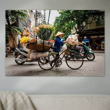 Woman with a bike full of flowers in Hanoi Vietnam Niels Rurenga