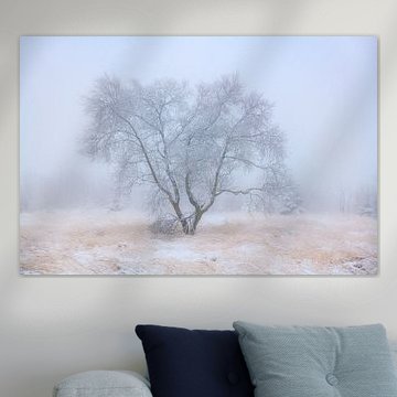 Tree full of frost on a wintry day with snow at the High Fens in Belgium. Jos Pannekoek