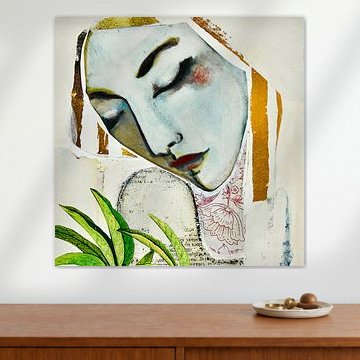 Gold Woman Face Schilderij op Maat XL
