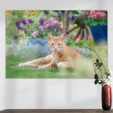 Cute ginger cat in a flowering garden Katho Menden