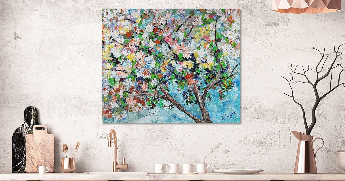 Mijn naam is Angelique Nooijen. Ik schilder al ruim 25 jaar en ben een zogenaamde autodidact. Ik heb inmiddels een eigen stijl ontwikkeld, vrolijk van kleur en grof van opzet. Het liefst schilder ik de Hollandse duinen en de zee en de bomen die in het voorjaar in bloei staan en dat alles op grote doeken van wel 100 bij 100 cm en 120 bij 100 cm. U kunt mijn werk bekijken op mijn website www.galeriea.nl.