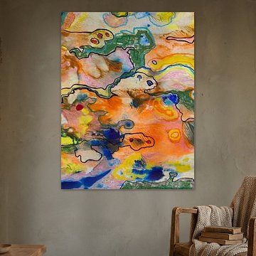 Paint loves me, for it is always on me somewhere! And I, Annemarie Gorter, I love paint. I think it is a wonderful opportunity that my abstract and colourful work can now be reproduced especially for you on a customised basis. I am a Dutch artist trained as a painter and graphic designer. In the past, I enjoyed teaching advertising professionals, web designers and printers at the Graphic School, but unfortunately, due to physical limitations, I h