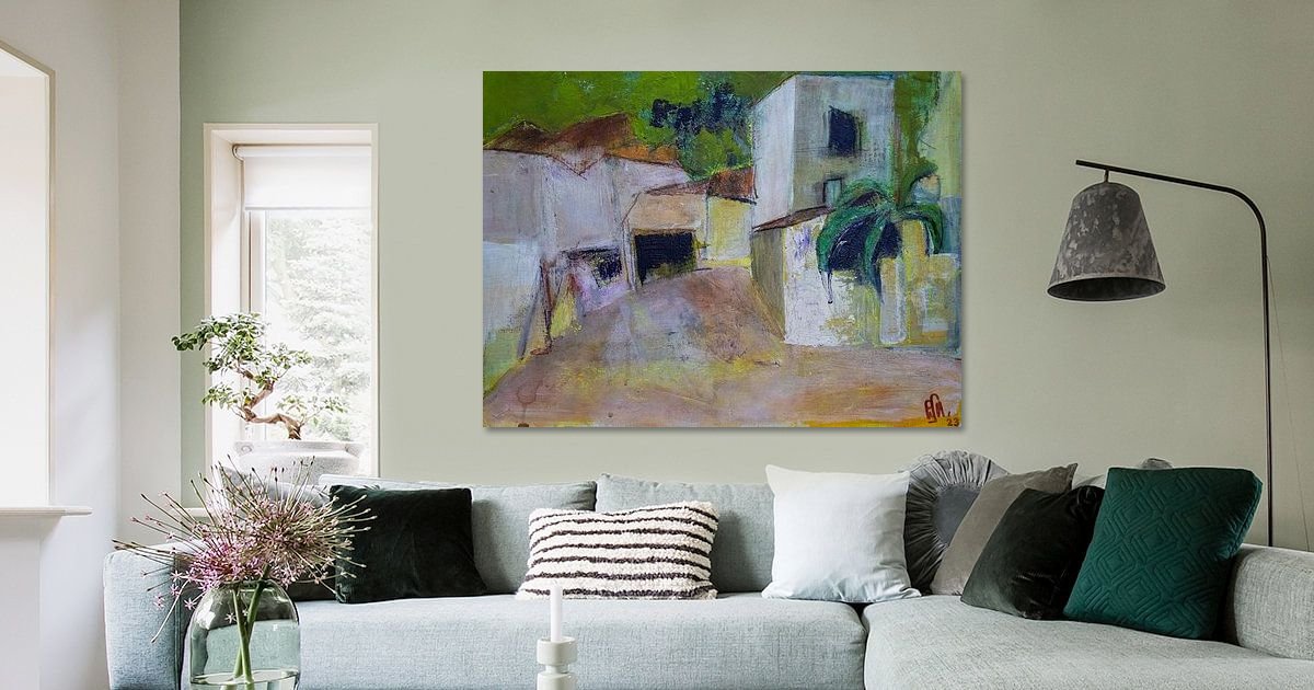 Houses in the landscape are a recurring theme. They intrigue me and symbolise coming home. A "home" I wish for everyone.
