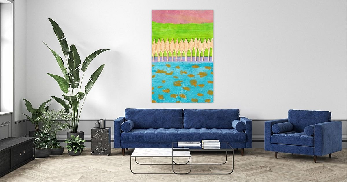 For buyers seeking art with warmth, depth and a poetic quality, my work offers a timeless addition to any interior. The combination of bright colours, graphic forms and subtle textures makes each piece unique and versatile — from modern living rooms to tranquil workspaces. My collages bring together tranquillity, memory and a touch of melancholy in images that continue to resonate.