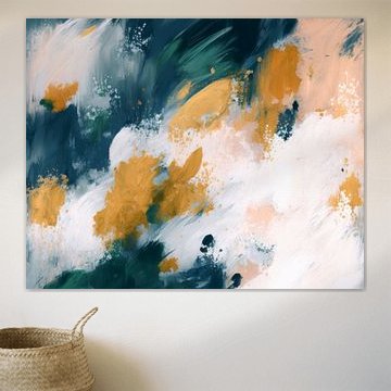 12. Modern abstract in ochre yellow, blue, white and pink