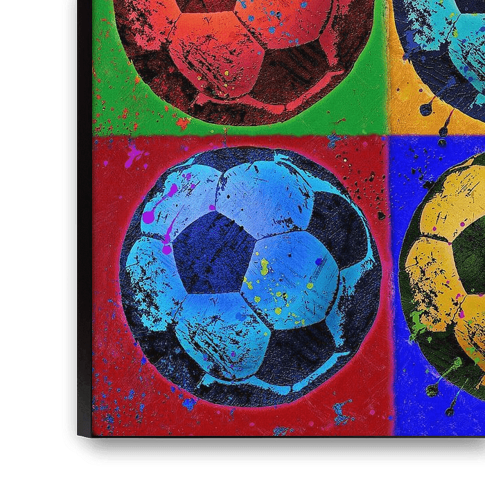 Almost all my works I first start manually with a sketch then I made the background. I drew the football separately and then digitally mounted it in different colours over the background to achieve this graphic effect. And then the images are digitally post-processed for reproduction at Werk aan de muur