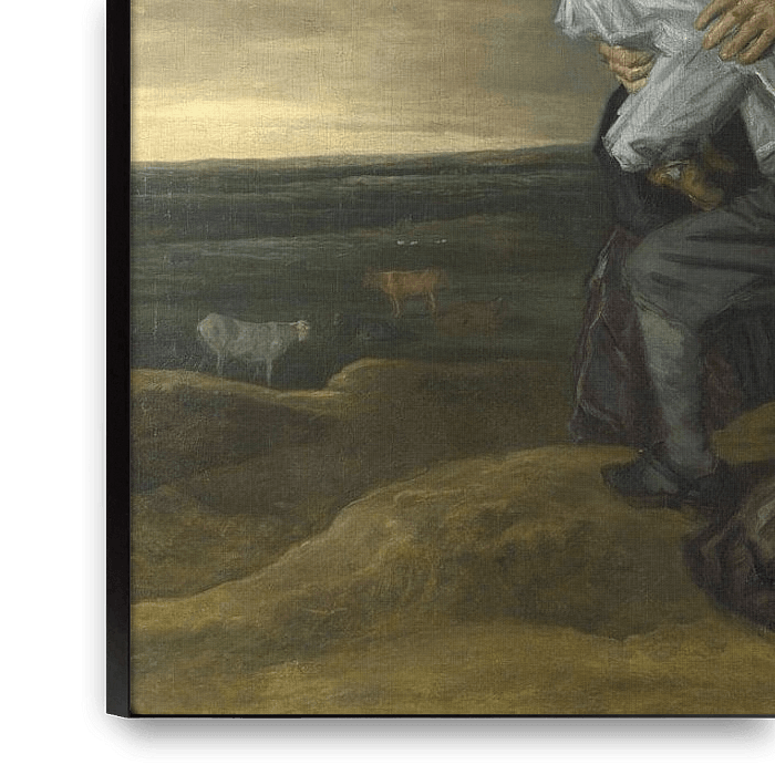 While we don’t know the name of the family, the style of the costumes suggests that it was probably painted in the late 1640s. The canvas has probably been cut down at the top and bottom. The background landscape is by another artist, possibly Pieter de Molijn or Reyer Claesz. Suycker.
