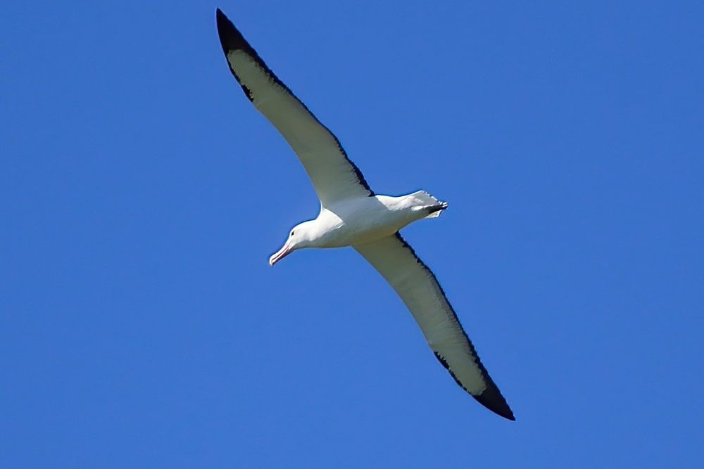 We went on a small boat trip around Taiaroa Head near the Royal Albatross centre at Harington Point, New Zealand. The objective was to spot some albatrosses and we were not disappointed. Here we have a Northern Royal Albatross in flight.