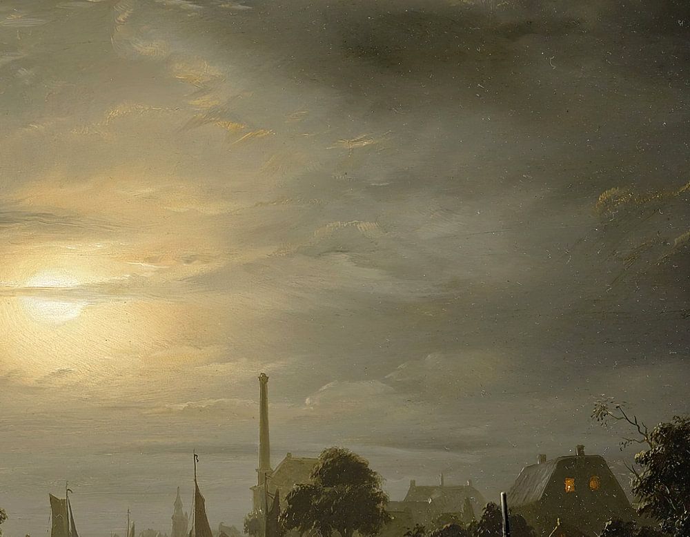 A River Landscape In Silver Moonlight, Petrus van Schendel (1846)