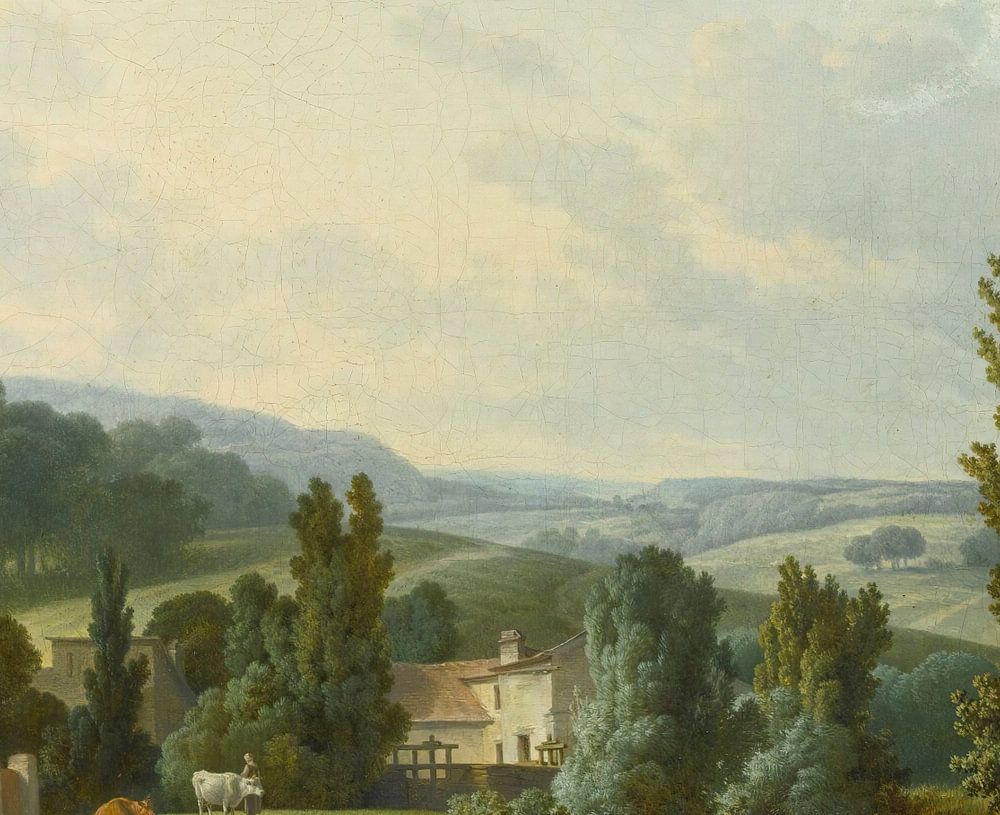 A Shepherd And His Family With Their Livestock Fording A Stream In An Extensive Landscape, Jean-Baptiste Huet