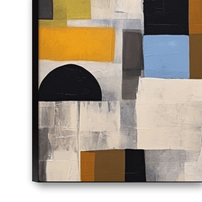 A Touch of Earthly Colours #VIII is a digital painting in abstract expressionist style. The colour palette is composed of different shades of orange, brown, grey, blue and black. The work gives a modern look to your interior!