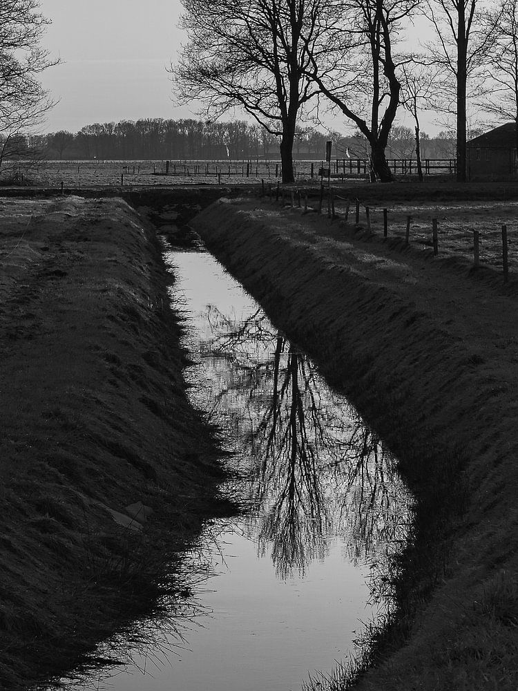 A beautiful stream along the road in Orvelte Drenthe. Walking into the pretty village, you come across this lovely stream with its fantastic reflection. Is that a nice picture for on the wall