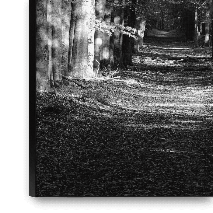 Buy the photo A beech avenue through a Velvet forest in black and white by Gerard de Zwaan on canvas, ArtFrame, poster and wallpaper, printed on demand in high quality.