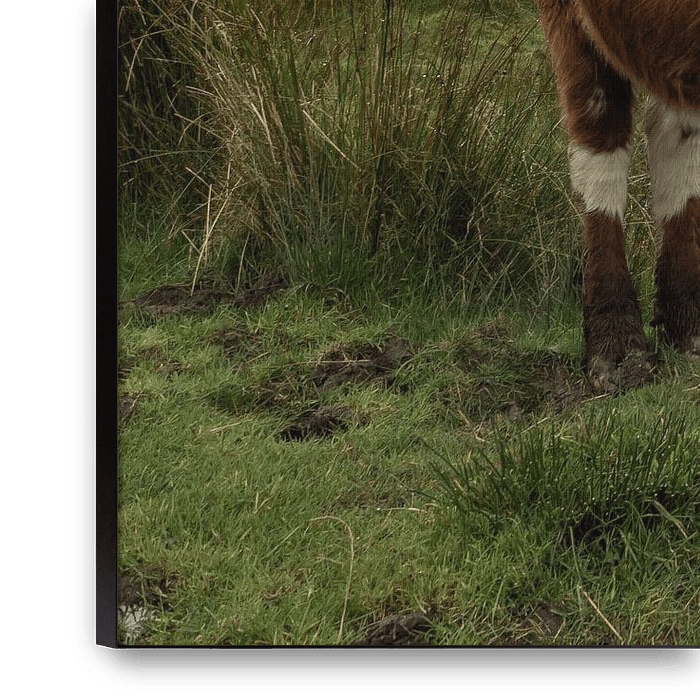 Buy this cow art A curious cow on the beautiful Scottish island of Skye by Natascha Worseling on canvas, ArtFrame, poster and wallpaper, printed on demand in high quality.