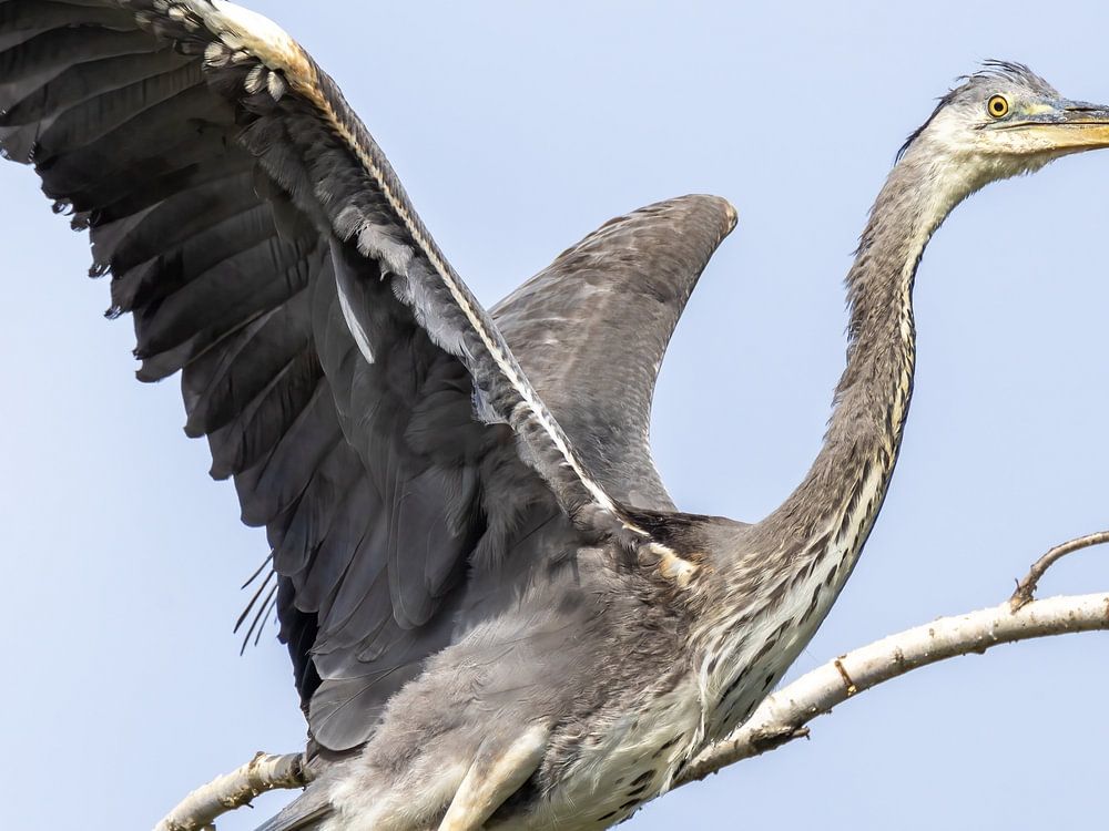 Buy this bird art A gray heron on approach to land by Teresa Bauer on canvas, ArtFrame, poster and wallpaper, printed on demand in high quality.