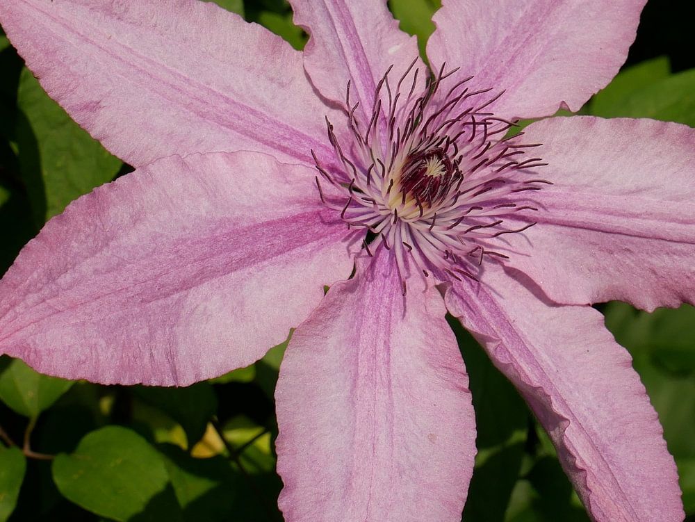 A large flowered pink/purple flowering clematis. Just beautiful and photogenic.