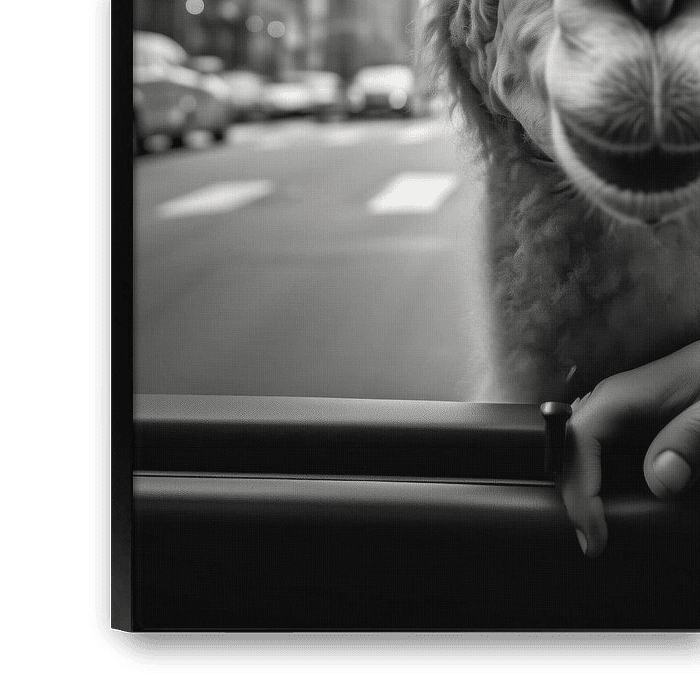A llama looks into the window of a taxi in the centre of New York. This surprising and funny black and white photo was created with the help of artificial intelligence, but could also have been taken by a world-famous photographer. Have fun with it.