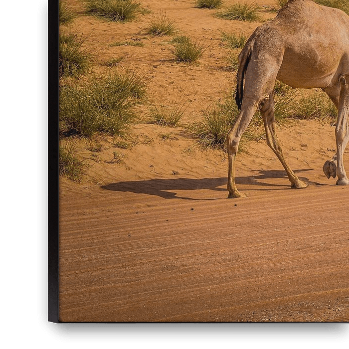 Buy the photo A lonely camel in the desert by Lisette van Leeuwen on canvas, ArtFrame, poster and wallpaper, printed on demand in high quality.
