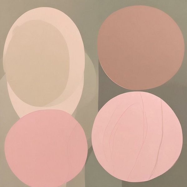 About ‘A modern abstract painting in oval shapes in paint pastel pink brown tones.’ by J.a Dijkstra