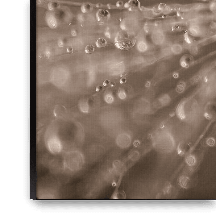 "A panorama of a dandelion fluff with drops" is an (extreme) macro photo of a dandelion fluff, with a beige - taupe coloured background. Water droplets hang from the fluff. When taking this photo, I chose a shallow depth of field. This creates a sense of depth in the work, in addition to a calm dreamy atmosphere. The focus is…