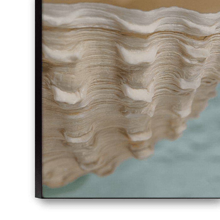 "A piece of open shell with blue-green background" is a macro photo of a shell, found on the beach of Domburg (Zeeland, Netherlands). This cream - beige shell ( the white drilling mussel ) was photographed only for a small part. This makes the shell almost frame-filling on the left side and on the right side you can see the water drops vaguely in the background. The structure of the shell is nicely visible on the picture, which makes it feel very natural. This work has a calming atmosphere. I think this is mainly due to the calm colours and natural look. Colours: natural colours, white, beige, sand colour, soft tints, pastel, champagne colour. Subject / association: kitchen, food, food, shell, nature, macro, sea, abstract, tranquillity