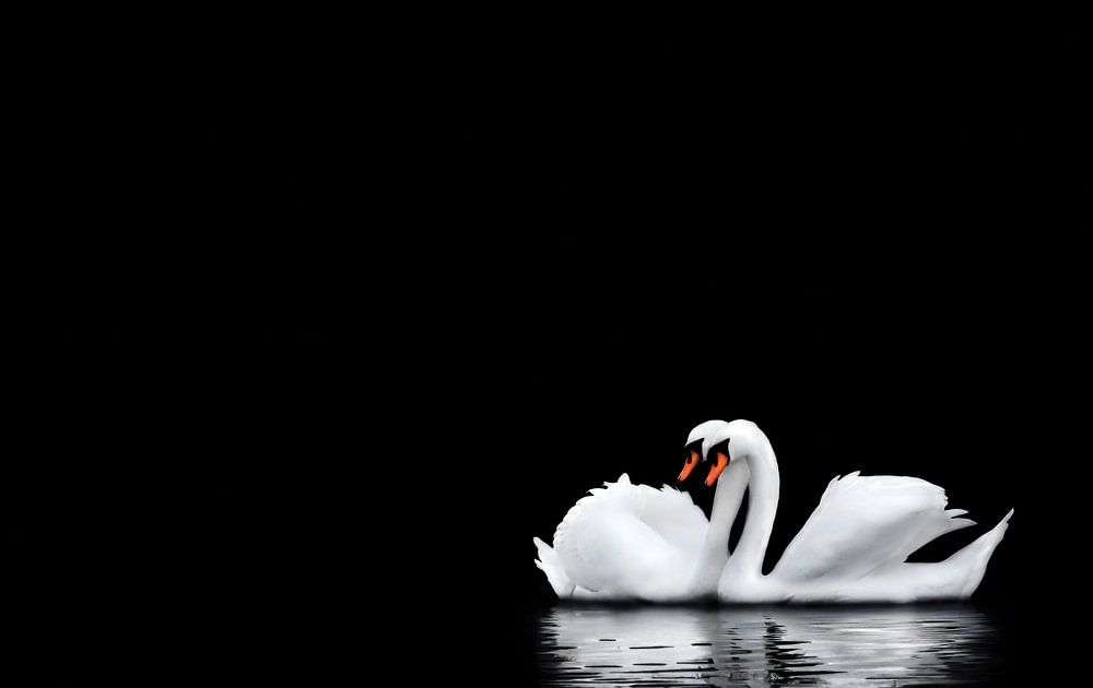 Due to the dark background nothing distracts from the two swans and the image looks calm and modern.