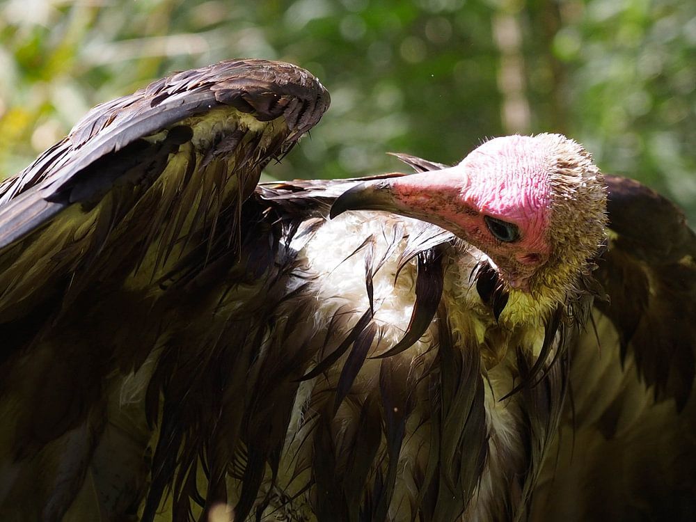 Vain vulture taking care of wet wings