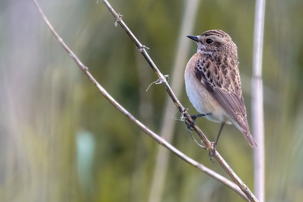 Buy this bird art A whinchat in the reeds by Premek Hajek on canvas, ArtFrame, poster and wallpaper, printed on demand in high quality.