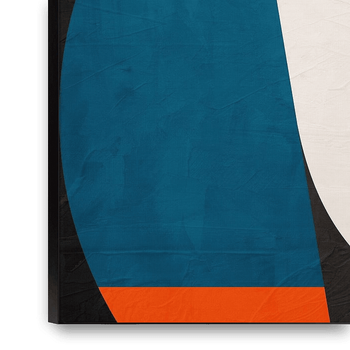Lively composition in blue and orange that attracts attention and arouses emotions. The geometric abstract art that everyone wants to have on their wall right now. Modernity, colour and visual impact in one work. Get it now!