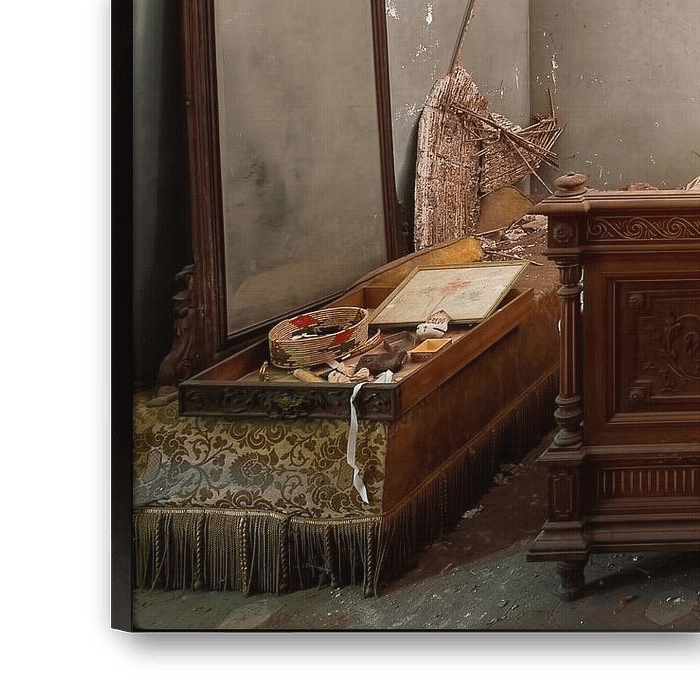 This great abandoned Art Nouveau style palace, probably built in the 19th century, is relatively hidden in a small town and is full of antique furniture. One of the former owners of the palace was a lawyer with a chivalrous title. In one of the bedrooms in the building I found a photo of him with a date of birth in 1874. Apart from him, the palace must have belonged to a religious and very wealthy family known for growing grain. In the office there were several registers of his birth. The son of the family probably has a farming degree and was born in 1941.