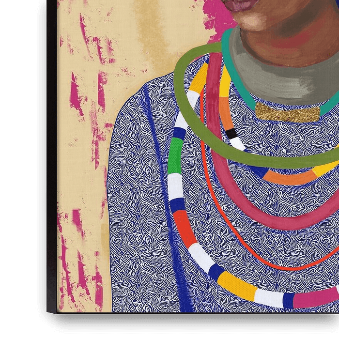 Buy this bird art Abstract African Portrait: Woman Turban, Blue with Bird by Patricia Leona Art on canvas, ArtFrame, poster and wallpaper, printed on demand in high quality.