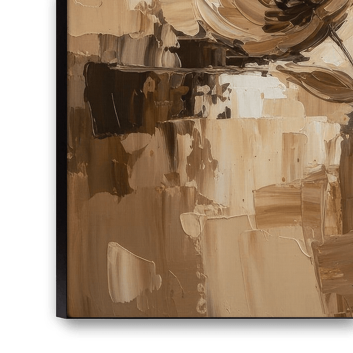 The soft earth tones create a soothing atmosphere, while the expressive brushstrokes give it a modern, artistic feel. This painting fits perfectly into interiors with natural materials, light colours, Scandinavian influences or a luxurious hotel atmosphere.