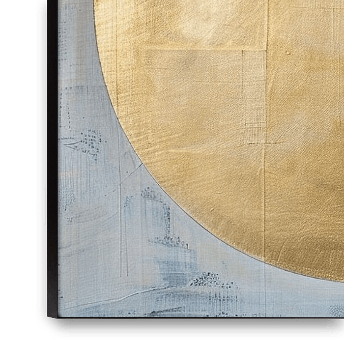 Details: abstract art, modern painting, geometric shapes, minimalist design, golden circle, red accents,…