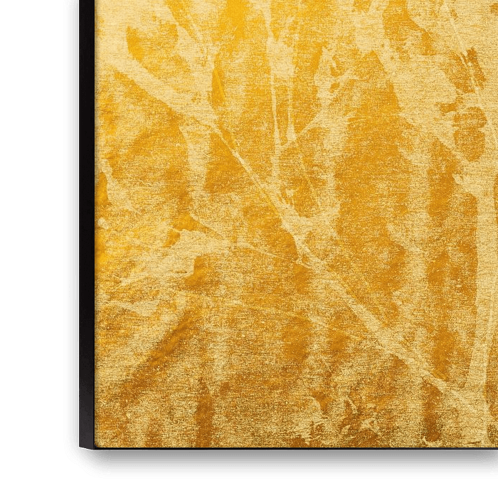 Monoprint of a real plant, different textures and effects create a dreamy painting full of golden light.