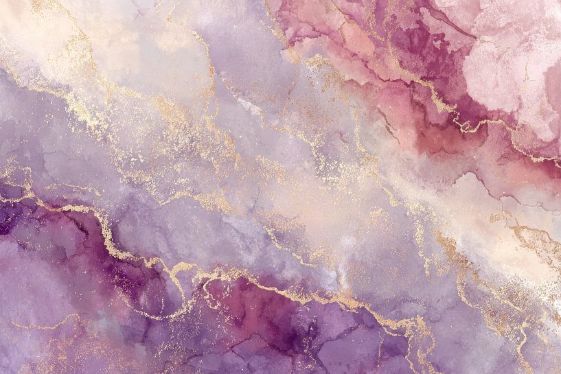 This abstract marble art combines soft watercolour shades of purple and pink with refined gold accents that flow through the image like delicate veins. The flowing texture and subtle colour transitions create a luxurious and dreamy look, inspired by natural marble structures. The combination of pastel colours and shiny gold gives the…