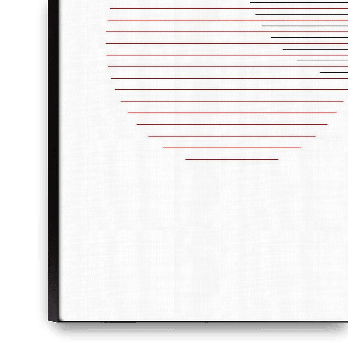 An abstract, minimalist print with striped circles in black and red. A nice geometric print for the modern art lover.