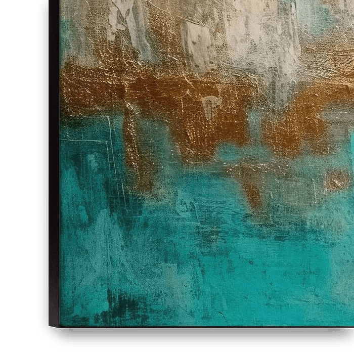 Buy this abstract artwork Abstract Painting - Turquoise and Gold Refined Textured Art by Joriali Abstract on canvas, ArtFrame, poster and wallpaper, printed on demand in high quality.