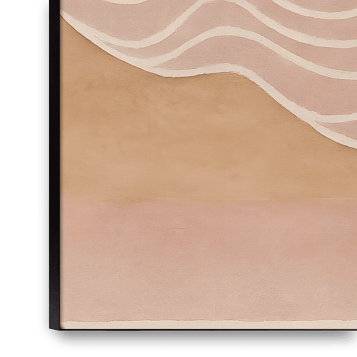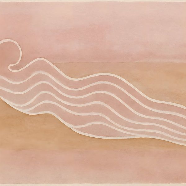 This minimalist watercolour work invites the viewer to stillness and imagination. Warm earth tones and soft, flowing shapes create an abstract composition that exudes tranquillity and balance. Subtle white pinstripes add a playful textural touch and give the work a layered, almost poetic depth.