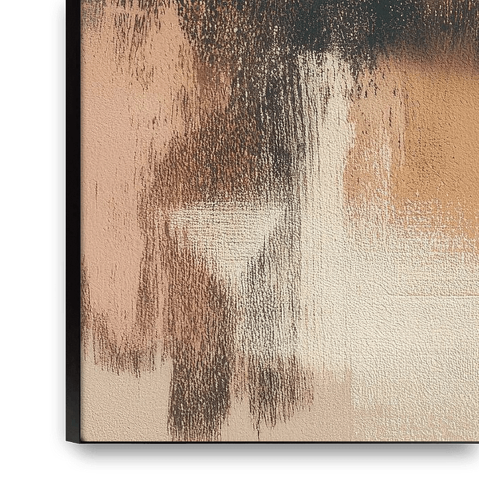 Abstract Savannah is a soft, abstract wildlife artwork in which a small herd of elephants moves slowly through the savannah landscape. The animals seem as if they are emerging from the paint: warm sand and nude tones merge with soft brushstrokes in brown, beige and light grey. The faded edges and textures give the work a dreamy, serene…