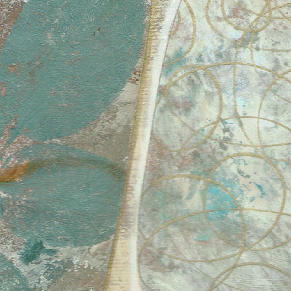 Hand-painted Organic shapes in Grey and Turquoise with Elements in Gold.