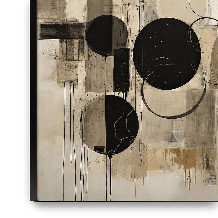 Step into the wonderful world of abstract circles and geometric prints with this vibrant decoration called. Inspired by dark black and soothing beige, this artwork brings to life a playful combination of colours.