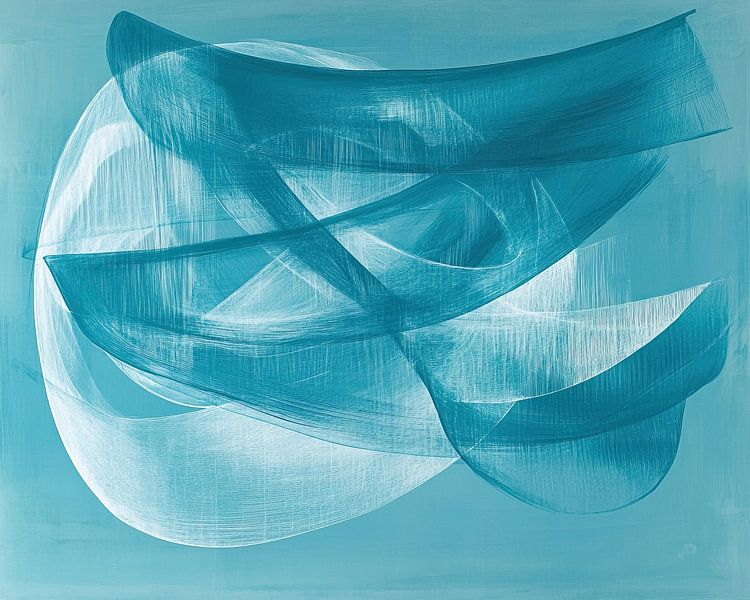 Abstract Turquoise | Teal Drift - This abstract painting features large, flowing ribbon-like forms in turquoise and white, built up from broad, transparent brushstrokes that overlap to create a light, undulating rhythm, making it ideal as an abstract painting or abstract artwork.