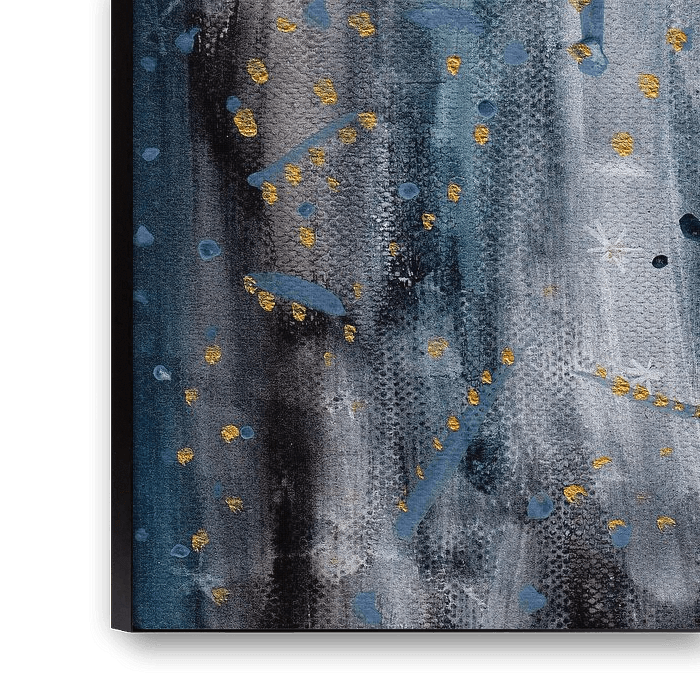 Abstract and modern, watercolor printable wall art, symbolizing a part of a galaxy, far far away, in dark blue and black tones, with golden accents. Perfect wall decor for modern home or even nursery room.