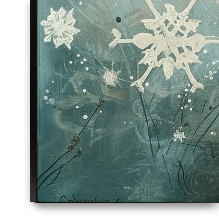 Details: abstract, winter, snowflakes, white, blue, brown, black, art