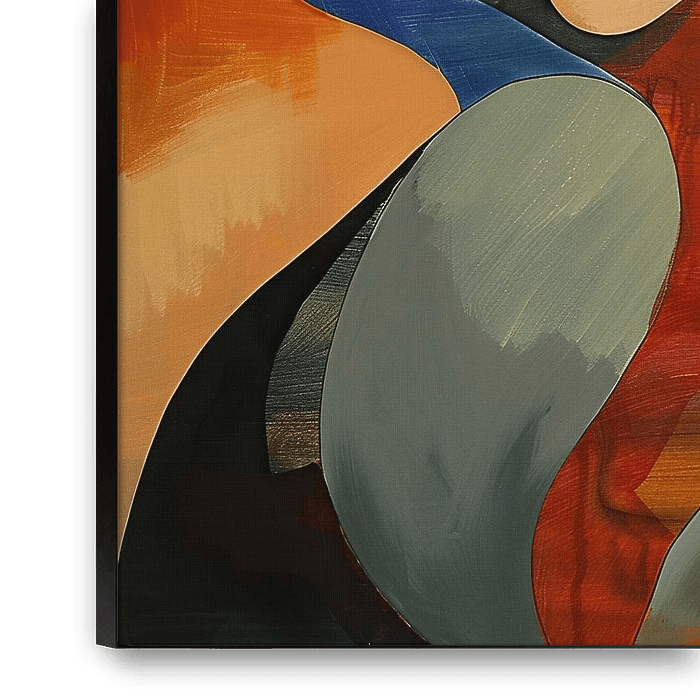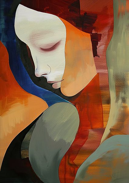 Abstract Woman - This abstract portrait painting depicts the serene facial contours of a woman, with a striking combination of warm colours such as red, orange and grey, which together create a modern and minimalist effect.