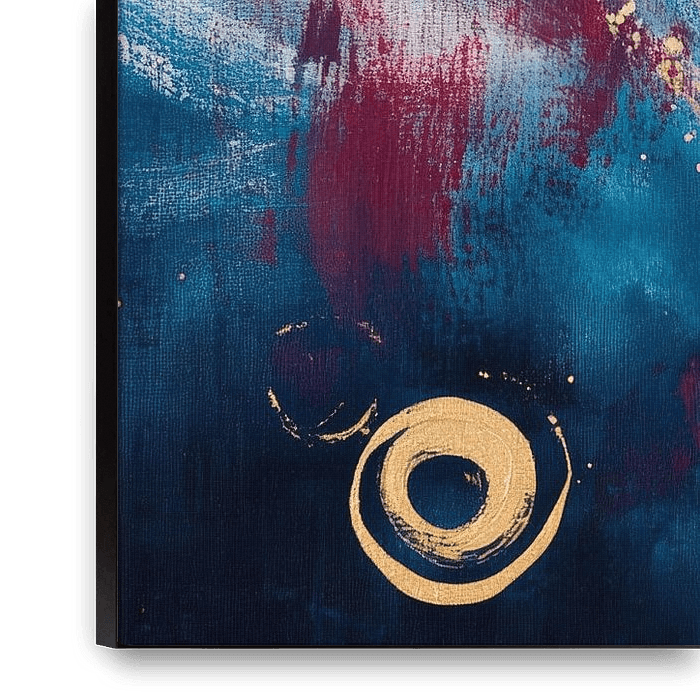 A fascinating interplay of deep blue tones and golden accents unfolds in dynamic circular shapes. The gentle waves and shimmering dots create a harmonious atmosphere that invites you to dream. Perfect for living rooms or creative spaces, this artwork adds a touch of elegance and inspiration to any room.