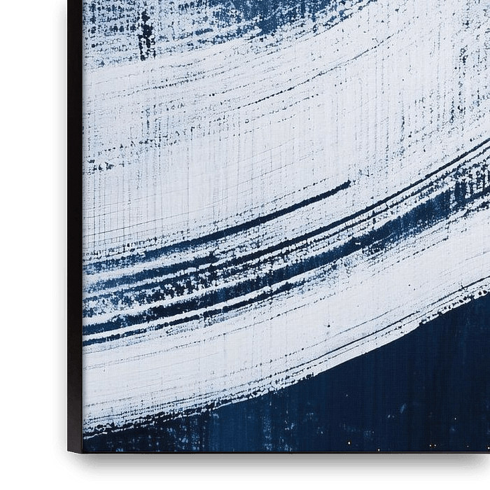This design is a striking abstract artwork that presents a combination of deep blue and gold hues, interspersed with dynamic white brushstrokes and golden splashes. The use of contrast between the colours creates a vibrant, modern look, perfect for adding energy and sophistication to a space. The mix of textures adds depth, making the…