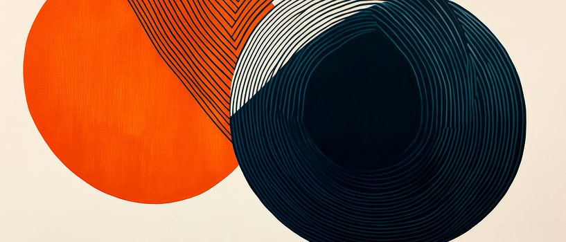 The harmonious combination of bright orange and deep blue creates a dynamic tension that captivates the eye. The subtle lines give the overall piece a certain elegance and modernity. Ideal for kitchens or living rooms, it brings fresh energy and a touch of contemporary style to any room.